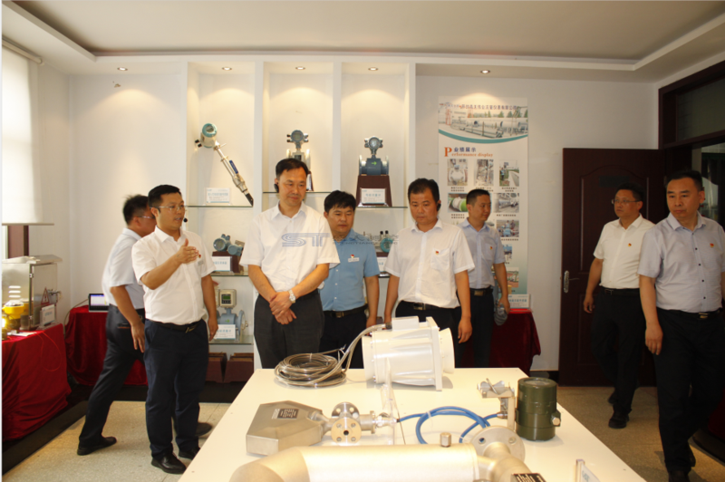 胡經(jīng)理為觀摩團介紹液體流量計展廳的產(chǎn)品